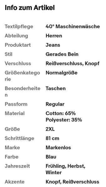 Herren Jeanshose 2XL 65% Baumw. 35% Poly, bei 40°C.€10 T.0163/1694190