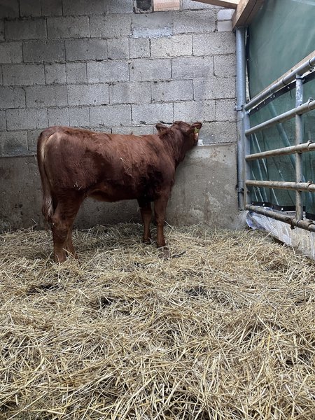 Limousinbulle gen. hornlos brav, zur Zucht geeignet, geb 7/25, Anz. € 50,-, 0172-7350304