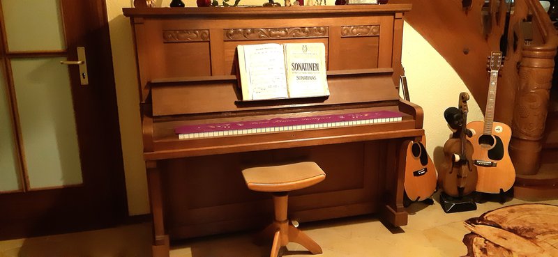Klavier + Hocker gut erhalten, älteres Klavier Marke Krumm Stgt., weicher Klang, wegen Neukauf gegen Selbstabholung abzugeben. 07248-9345668