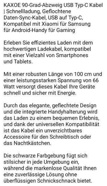Schnell Ladekabel 66 W 100 cm/39,37 Zoll zum Laden der Geräte €5 T.0163/1694190